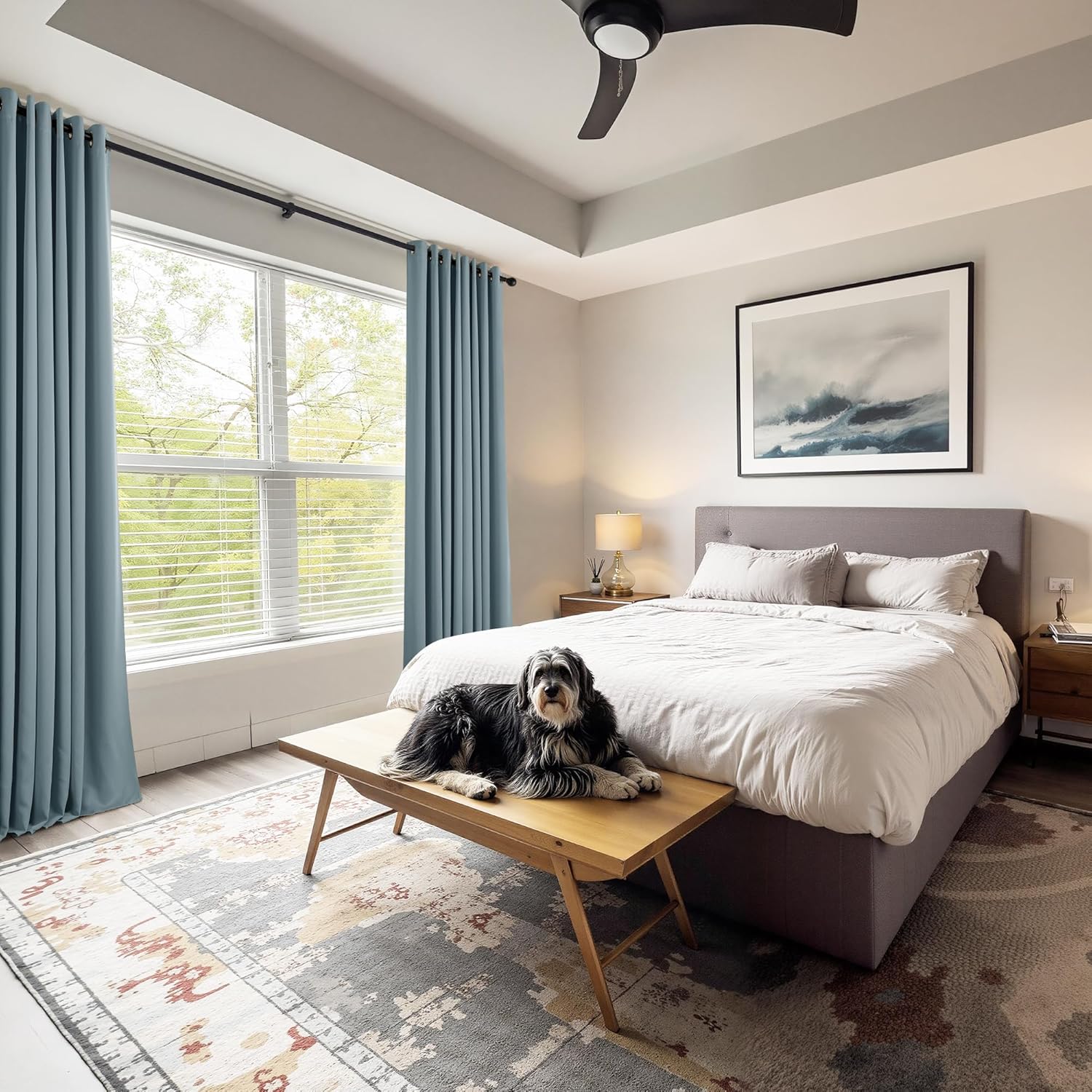 PONY DANCE Dusty Blue Short Blackout Curtains 36 inch Length for Kitchen, Privacy Small Black Out Grommet Half Window Drapes for Bathroom Cabinet Camper RV Bunk(W42 x L36 inch, 2 Panels)