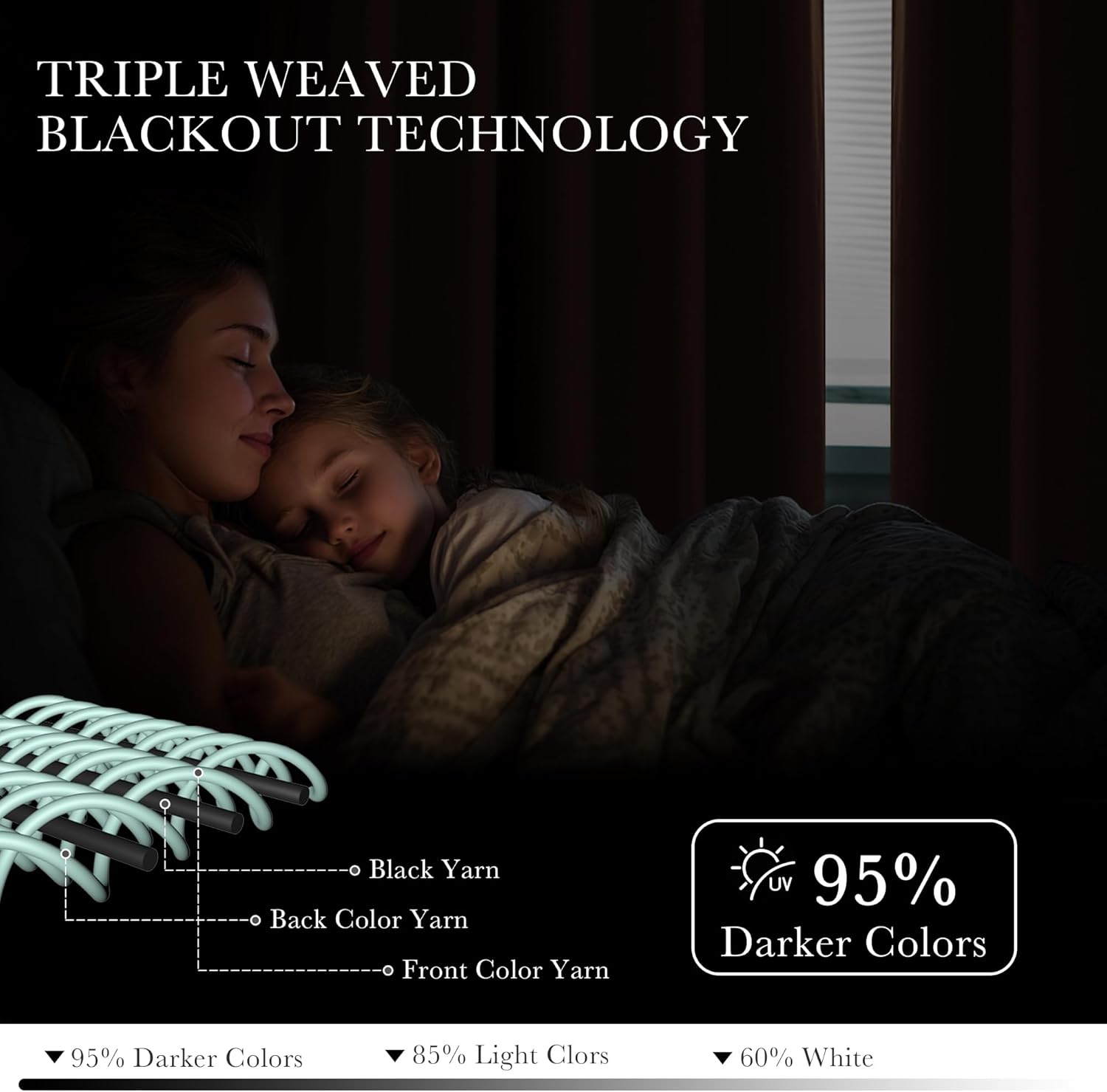 - Good Material - 100% soft polyester fabric. Curtain panels with no liner, fade-resistant, thread trimmed and wrinkle-free. Function 1. 90 - 100% blackout(dark colored works better); 2. Privacy protection; 3. Blocking cold air into the house like a temporary shield or room divider screen.; 4. Soundproof curtains reduce noise from outside or from other room.