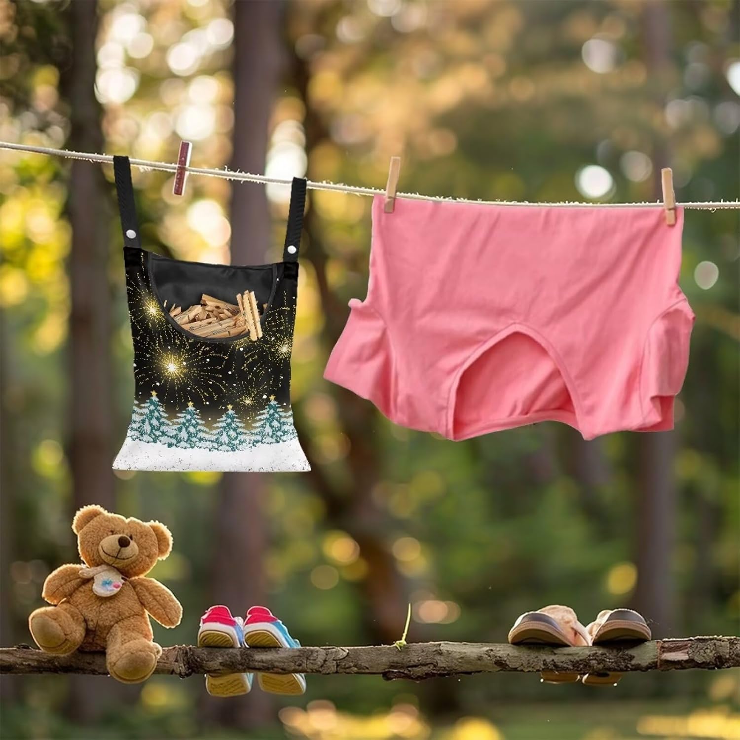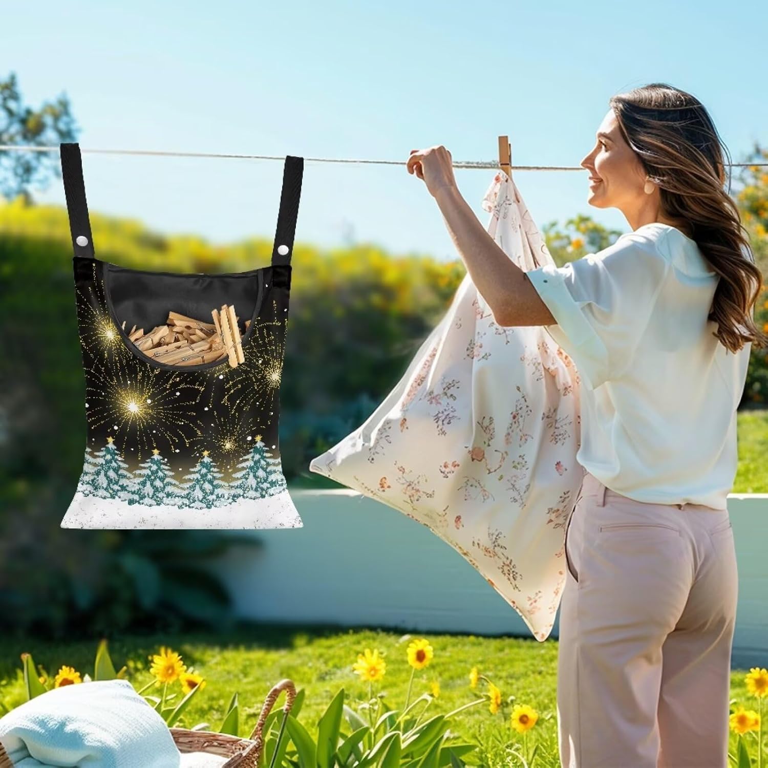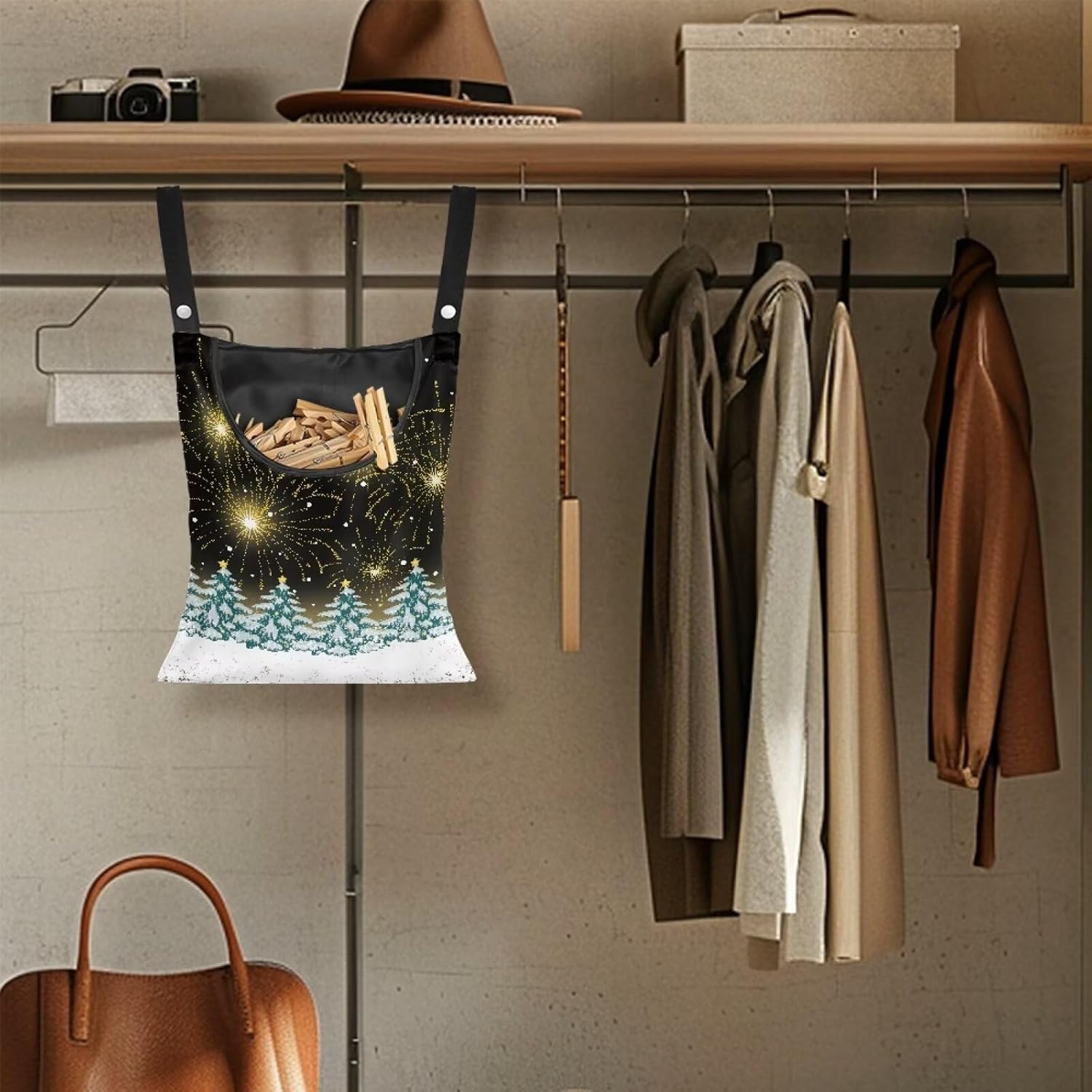 Christmas Tree Adjustable Door-Hanging Laundry Clothespin Bag Clothespin Storage Bag Laundry Clothespin Bag, Fashion Star Hanging Storage Organizer with Hanging Rope for Outdoor and Indoor