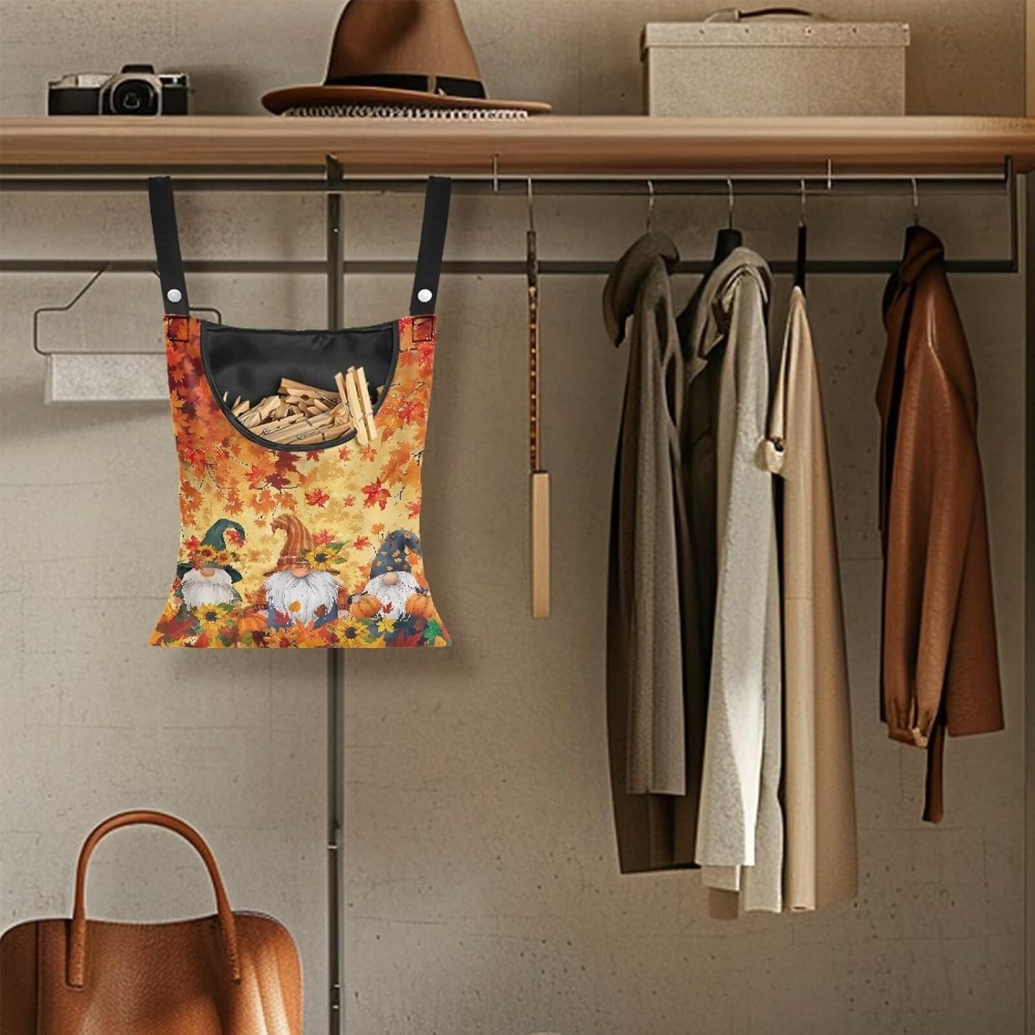 Autumn Goblins Clothespin Bag with Hanging Rope 14.5 x 12 Inch Summer Waterproof Laundry Clothes Pin Holder Clothespin Storage Organizer with Large Opening for Home Outdoor