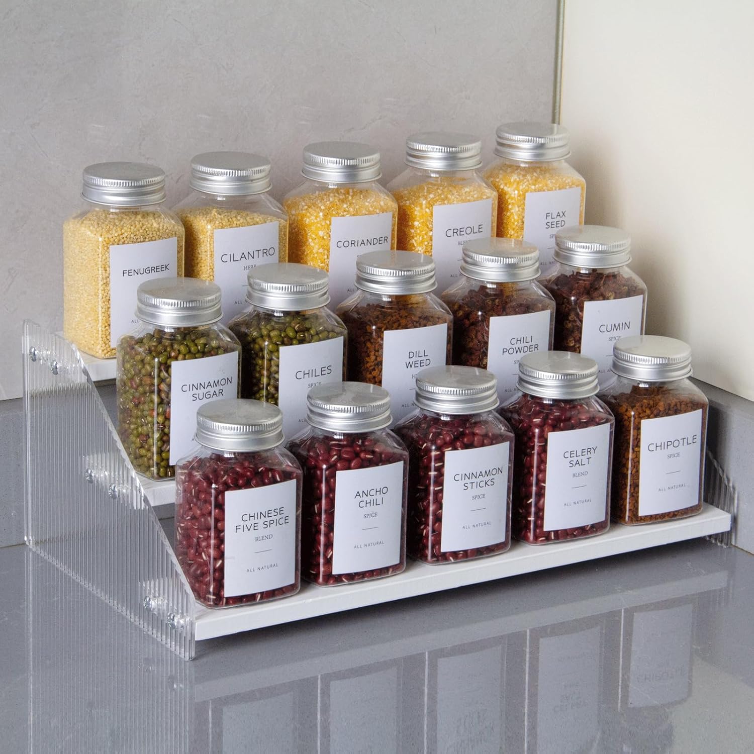 - Elegant & Sturdy: Risers display stands constructed from high-quality pine wood and corrugated acrylic, making it both aesthetically pleasing and fashionable, as well as durable and resistant to deformation, the spice shelf is a beautiful and robust addition to any space