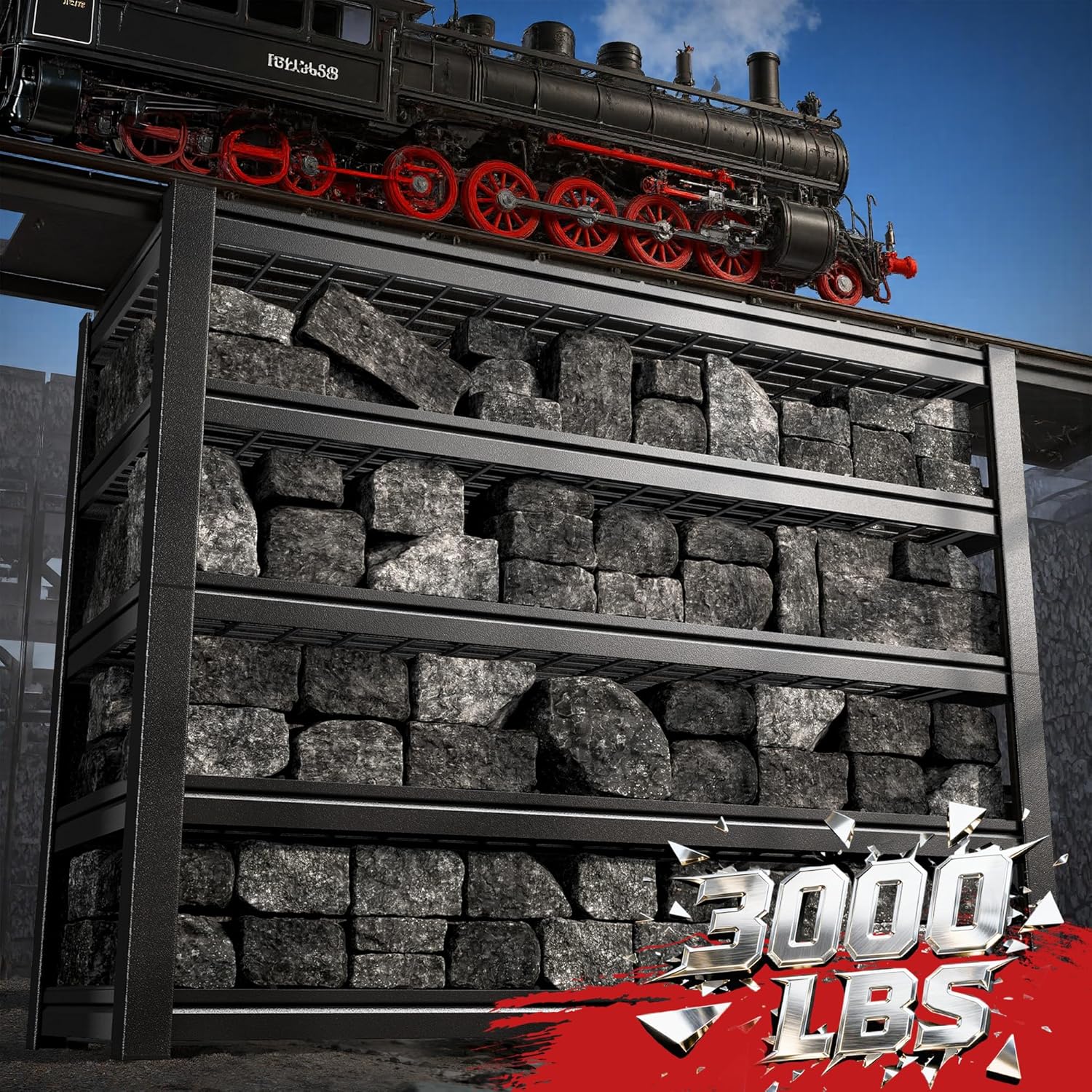- 【Double Layer Upright Design and Heavy Duty Reinforced Metal Construction】This garage shelving features a double-layer upright design, that are wider and thicker than ordinary shelves. Each tier includes added support rods, delivering a 600 lbs per shelf capacity and a total load capacity of 3000 lbs. This industrial-grade build ensures maximum stability and safety for heaviest tools and equipment, providing complete peace of mind
