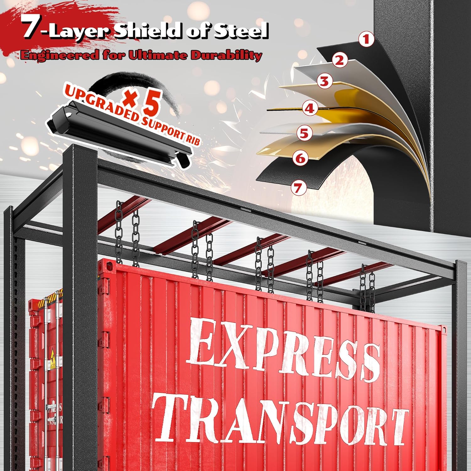 - 【2500LBS Industrial-Grade Load Capacity】The 2500LBS super heavy-duty shelf can bear a load of 625LBS per layer, each shelf features a 5-rib support structure. Sturdy and professional for carrying heavy objects, suitable for storage needs in garages, factories, warehouses, basements, outdoors and supermarkets