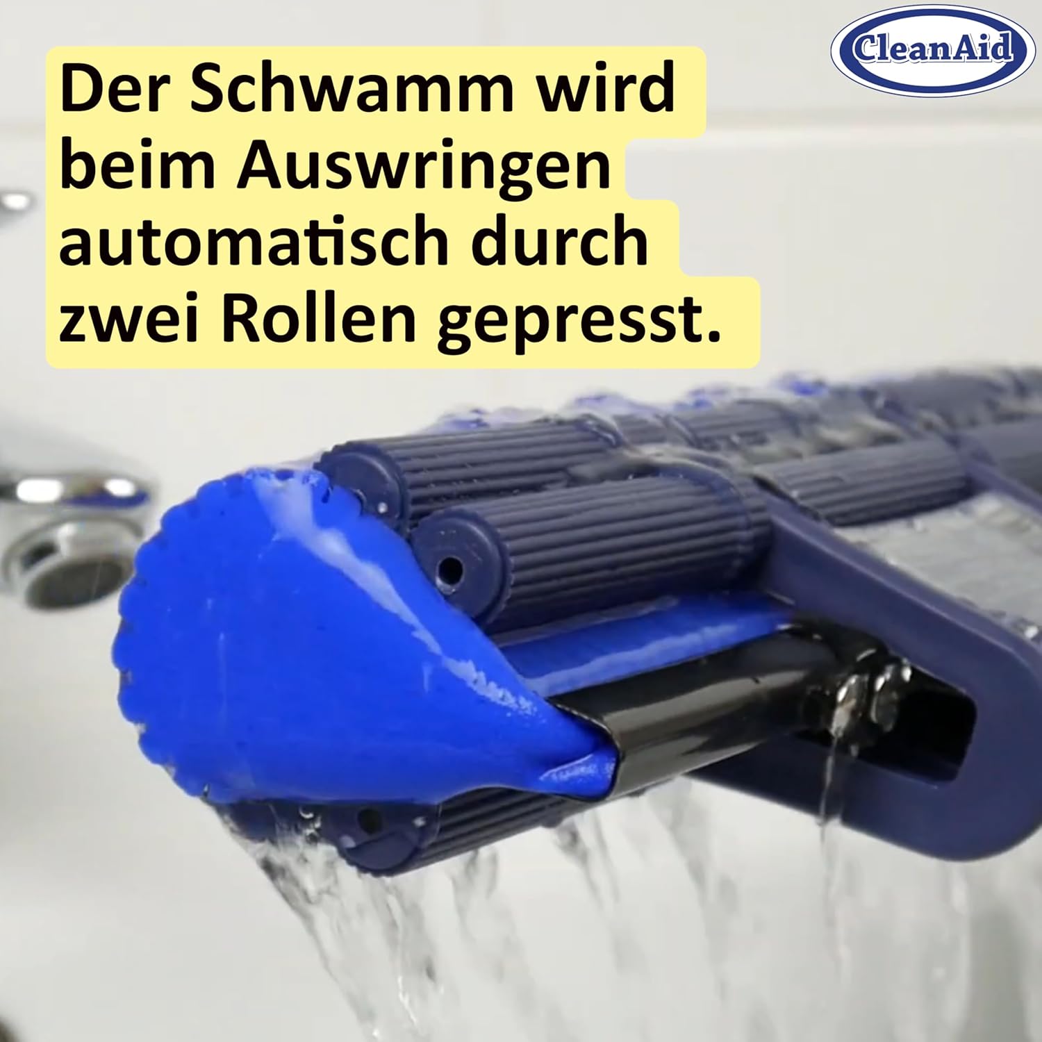 - ✅ CLEAN & DRY HANDS - With the unique OneTouch lever system, you can easily control the moisture level of the floor mop. Thanks to the wringing function, your hands stay clean and dry. Simply rinse and wring out under running water. Wet and dirty hands are a thing of the past. Replacement cleaning sponges are also available from us and can be easily changed by loosening the screws.