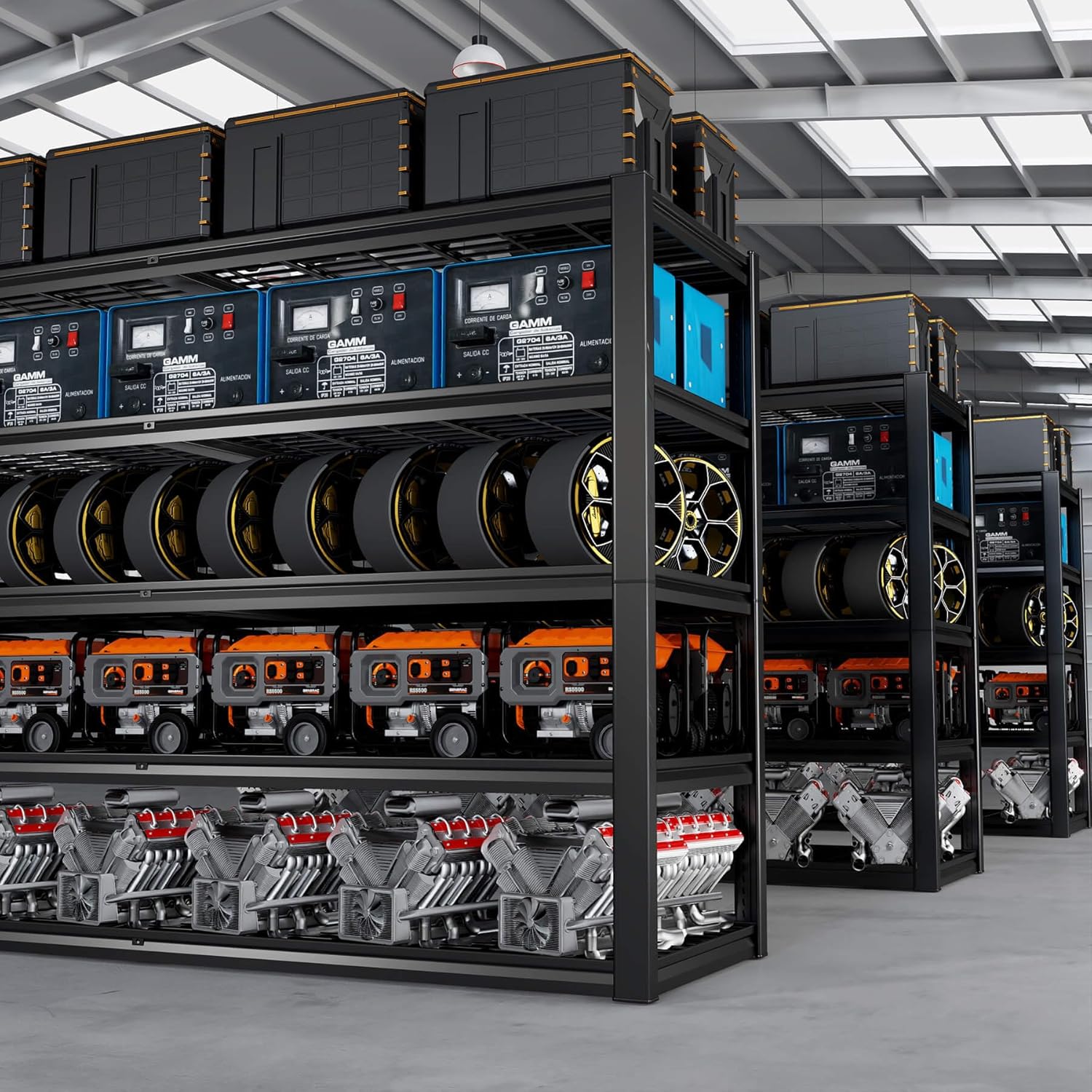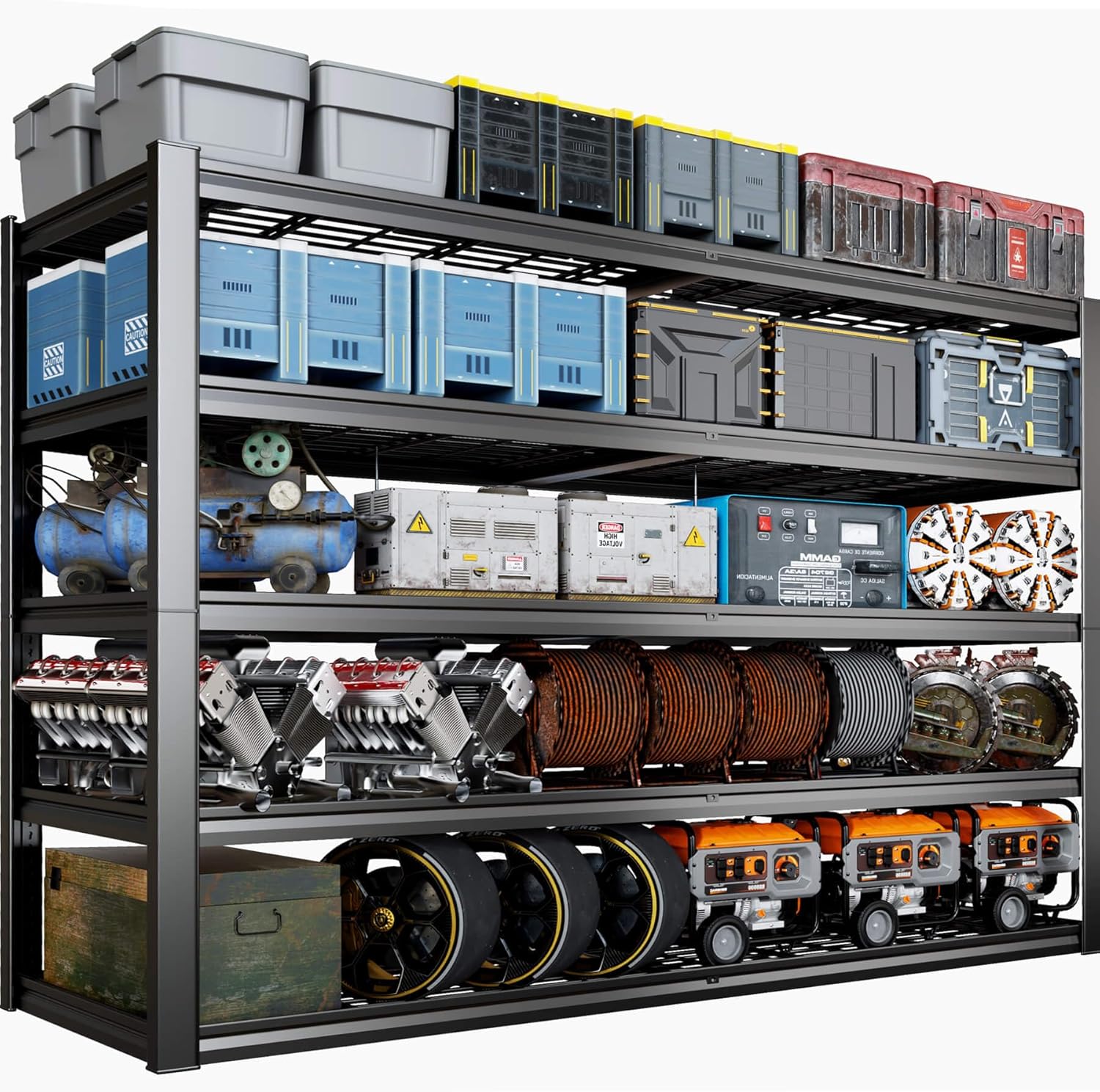 - 【Adjustable Heavy Duty Metal Shelves to Meet Different Needs】The height of each tier can be adjusted not only by moving the crossbar to meet the needs of different heights, but also the shelves can be assembled or disassembled into a variety of different metal shelves. The 84-inch tall 3500 lb. load-bearing garage shelves are not only strong, but they also give you more storage space.