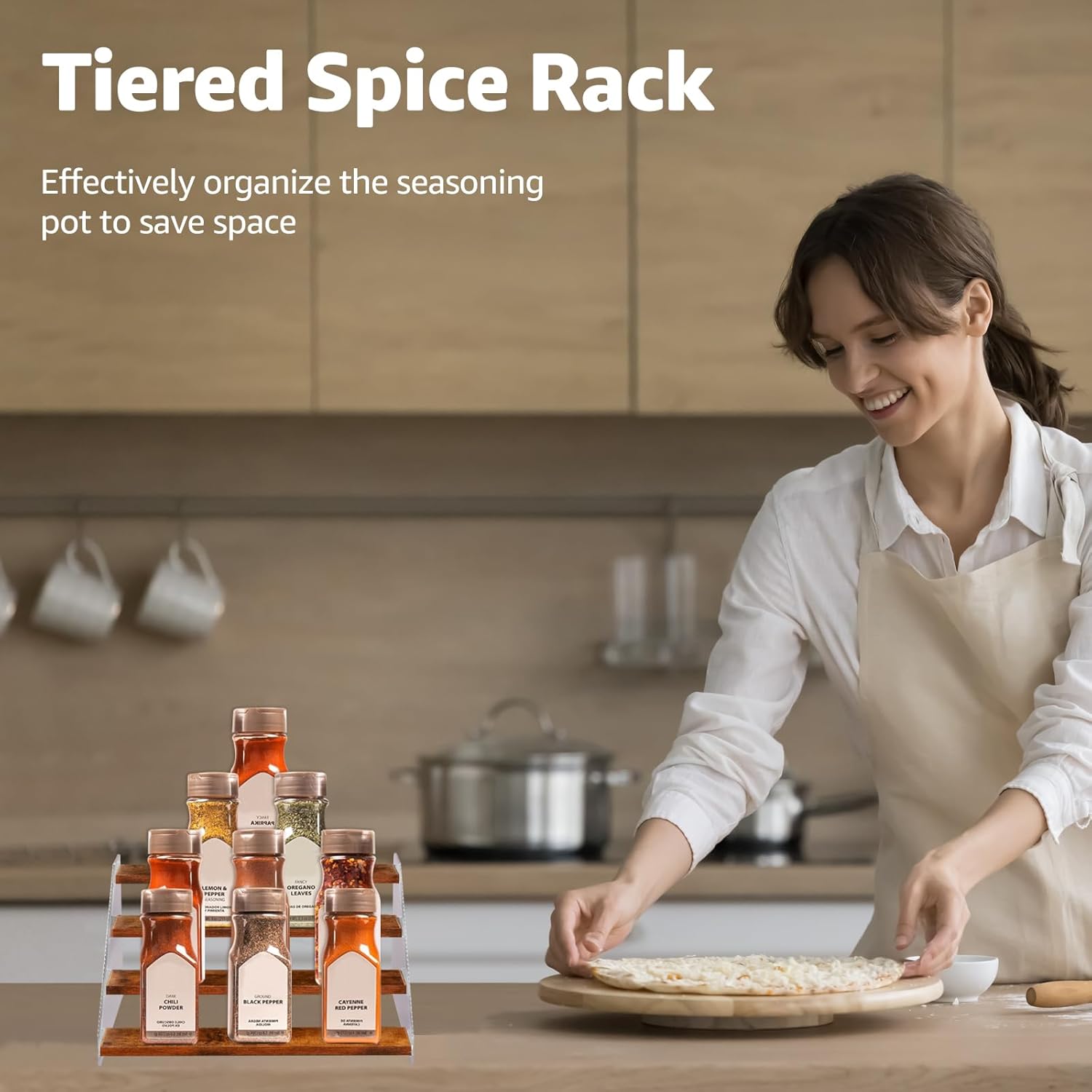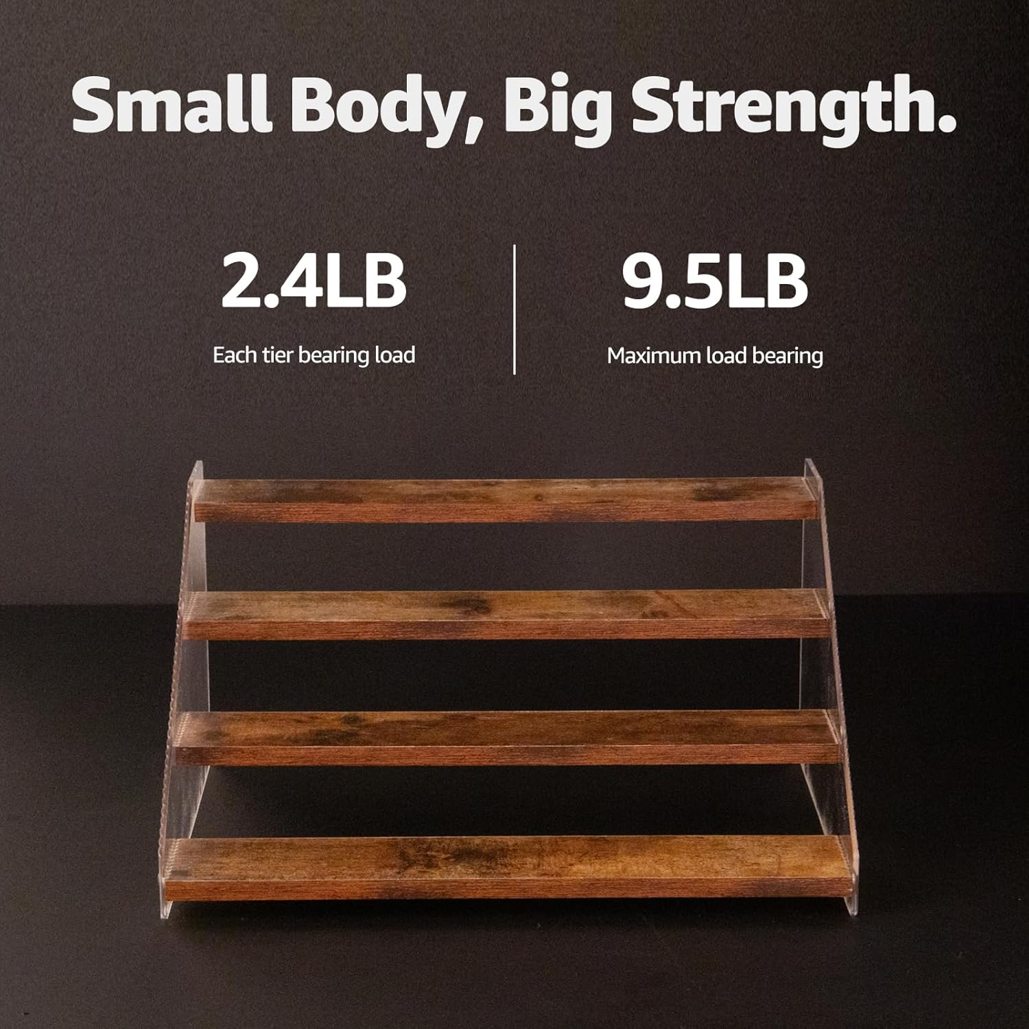 - Elegant & Sturdy: Risers display stands constructed from high-quality pine wood and corrugated acrylic, making it both aesthetically pleasing and fashionable, as well as durable and resistant to deformation, the spice shelf is a beautiful and robust addition to any space